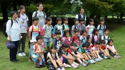 昼食の後、1・2年生は一足早く学校に戻ります。みんなで集まってお礼とお別れを言って、1・2年生はクラスの写真を撮影して帰路につきました。