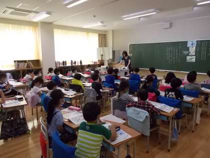 1、2、6年生は、新校舎の昇降口で、新しいくつ箱にくつを入れ、教室に入りました。給食も、新しい教室で食べました。いつもより、おいしく感じたことでしょう。3年生以上の算数教室も、新教室で行いました。休み時間には、他学年の子どもたちも、遊びに来ていました。