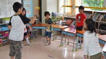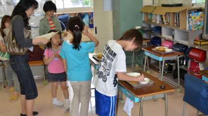 この日は雨が降っていたにもかかわらず、朝から多くの方が訪れて、子どもたちがと一緒に楽しくすごしてくださいました。写真は2年の「ワクワクボール入れ」「ダーツ」、4年の「ビーンズワールド(豆移し)」のようすです。