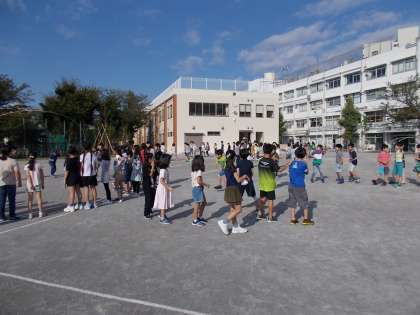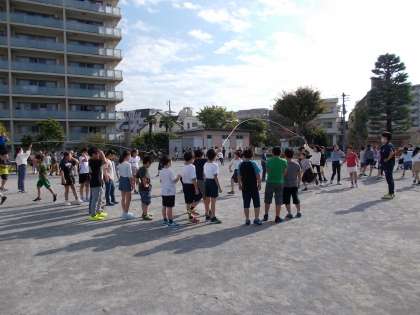 秋晴れの下、長なわ跳びに取り組んでいます。学級で話し合い、目標記録を立て、自己ベストに挑戦します。今回は3年生で1クラス、4年生でも1クラスがベスト記録を出しました。高学年(5・6年生)は毎週水曜日の朝、低学年(1・2年生)は毎週木曜日の朝に、スポーツタイムに取り組んでいます。