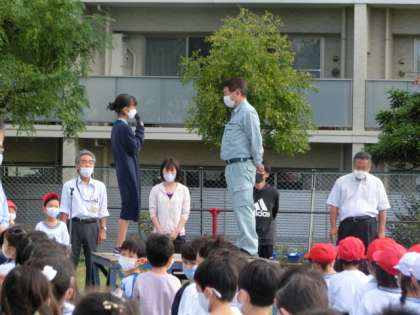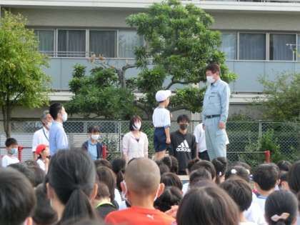 今週月曜日の朝会では新校舎の落成を祝う会を行いました。