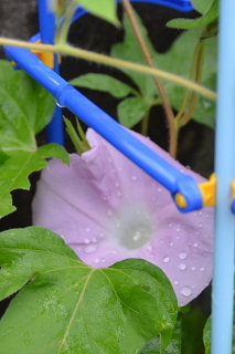 28日(火)朝、1年生がいつものように自分たちで一人一鉢育てているアサガオの水やりをしていて大発見。アサガオの花がさいていました。よく見ると、どの鉢にもつぼみがいっぱい。もうすぐ花盛りになりそうな気配です。子どもたちは大喜びです。花の観察を夏休みの宿題にしようかと思っていた担任としては、早い開花にちょっと焦っています。