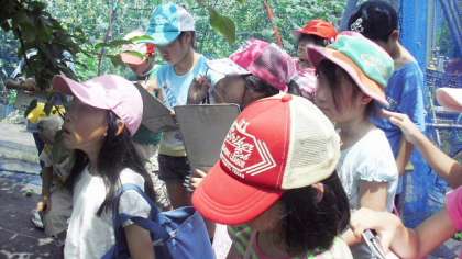 28日(火)、3年生が近隣にあるリンゴ園に出かけて、ようすを見学してきました。3年生は総合的な学習の時間に、地域にある自然の観察や、リンゴ園を春から継続して観察しています。今日は真夏のような日差しの中、今頃の作業についてお話を聞き、袋かけのようすを見てきました。一つ一つていねいに袋をかけるのが大変だというお話に、聞く方の子どもたちも額に汗しながら、しっかりと記録をしてきました。