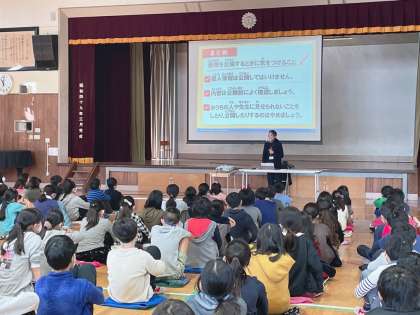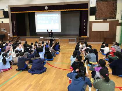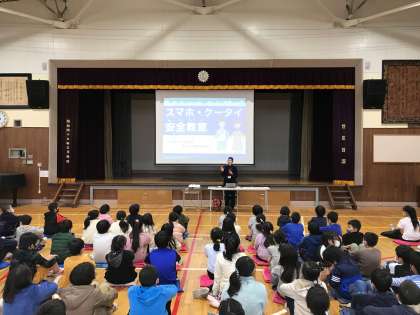 12日(土)にNTTドコモの方をお招きして、4〜6年生対象にセーフティ教室を行いました。2校時に4年生と5年1組、3校時に5年2組・3組と6年生がそれぞれ授業を受け、インターネットの便利さの裏にある注意点を学びました。