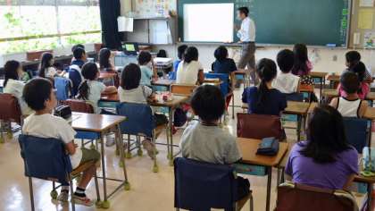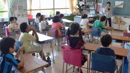 29日(水)午後、世田谷9年教育の小中学校グループ校である、希望丘中学校、船橋中学校、船橋小学校、千歳台小学校と本校の教員が合同で研究会を行いました。本校の全クラスが5校時に今年度試案として発行された「世田谷教育要領(教育指導要領の世田谷9年教育版)」に掲載された指導計画例に従って授業を行い、他校の教員が参観し、その内容について検証することを目的としたものです。(写真は上から4年2組社会、4年1組国語、3年国語)