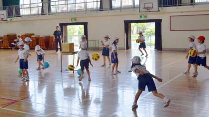 世田谷教育要領では中心に「ことばの力」を掲げ、それを基盤として「豊かな人間性」「豊かな知力」「健やかな身体」を育むことを目標にしています。今回はどの授業でも子どもたちの考えを発表する場や意見の交流の場面を設定しました。(写真は上から5年理科、2年体育)