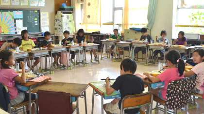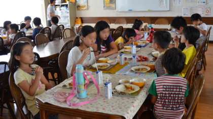 5日(火)は、「希望っ子班給食」を行いました。教室で配膳を終わった子が、1年から6年までの縦割りグループ「希望っ子班」ごとに集まって給食を食べます。全校遠足や休み時間などの遊びでも、定期的に希望っ子班の活動をしています。いつもとちがう雰囲気で食べる給食はどうでしたか。牛乳は持ち運ぶときに割れないように、この日は紙パックにしています。