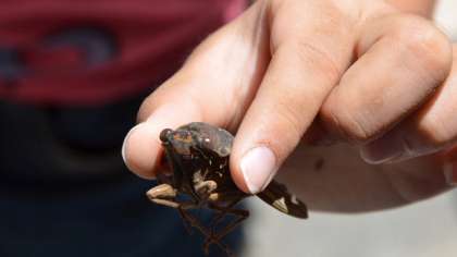 「校長先生セミがいたんだよ」 昼休みに1年生が校長室に校庭側からやってきました。その指先にはアブラゼミが。もってきた時には、片方の羽根もとれていて全く動くようすがなかったのですが、セミのことについてしばらく話していたところ、突然もぞもぞ動き始めました。「わーっ生き返った」と大喜び。「木のところにかえしに行かなくっちゃ」と走っていきました。