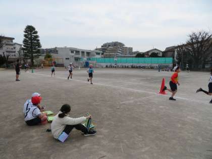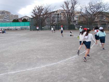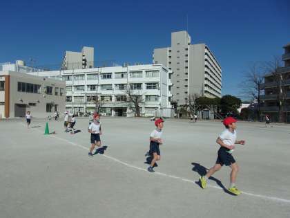 校庭体育では、ペース走に取り組んでいます。同じ速さで走れるよう、また、5分間で走れる距離が伸びるように、練習を繰り返しています。体力がついたことを実感している子もいます。冬ですが、体がぽかぽかに温まりました。
