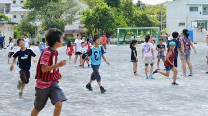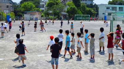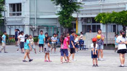 14日木曜日、中休みは「希望っ子班遊び」をしました。いつもお知らせしているように、異学年(1年から6年まで)縦割りグループが「希望っ子班」です。直前にスプリンクラーで水まきをしたので少しはましだったかと思いますが、今日も暑かった校庭。それでもどのグループも高学年がうまくリードして元気いっぱい遊んでいました。遠足や給食、今日のような遊びなどで出会う機会が多いので、学年を超えても子ども同士違和感がないのが本校のよさであると思います。