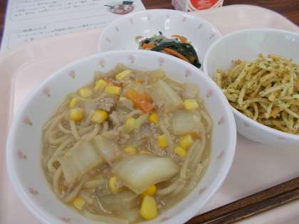 ラーメンは麺とスープと具材の入ったもので、中国の麺料理が日本で発展したものです。味付けは、塩、しょうゆ、みそ、豚骨などがあります。今日はみそ味のラーメンを味わってもらいました。
