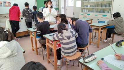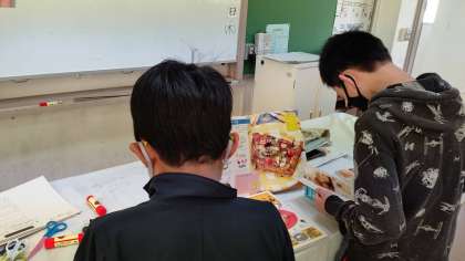 家庭科では、栄養素のバランスを調整しながらオリジナルの献立を考える学習をしています。みんな一生懸命考えていました。