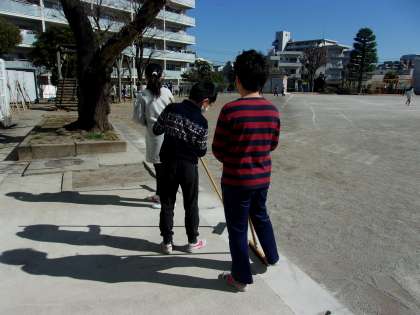 4年生は、自分の教室以外にも、昇降口の清掃も担当しています。