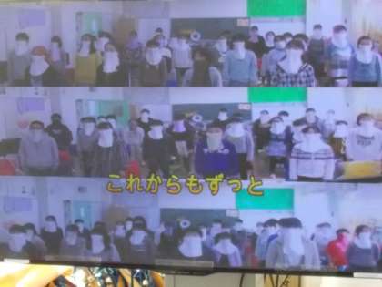 そして、もうすぐ最高学年となる5年生の範唱をテレビで視聴しました。澄み切ったあたたかい歌声に全校児童がくぎ付け!