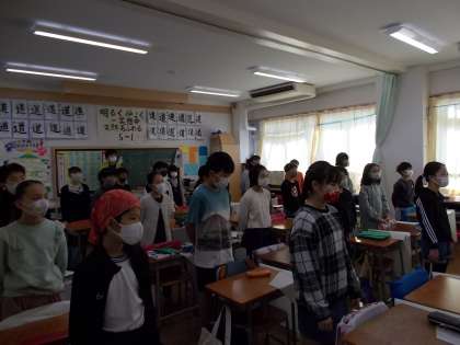 最後は、範唱にあわせて心の中で歌いました。声も出さず、各教室での参加だったにもかかわらず、学校中があたたかい空気に包まれたような、朝のひとときでした。