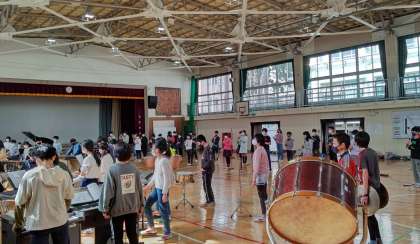 体育館全体をステージにするという初の試みですが、その巨大な空間を楽しむかのように、力強く演奏していました。当日までどこまで練り上げてくれるか、楽しみです!