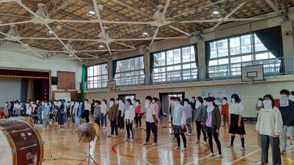 例年は音楽室で合同授業を行ってから体育館デビューしていましたが、三密を避けるため、一週間早い体育館練習のスタート。