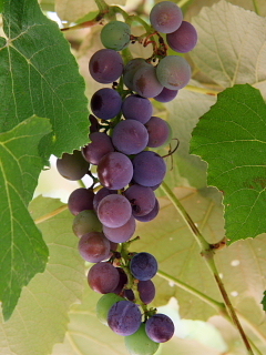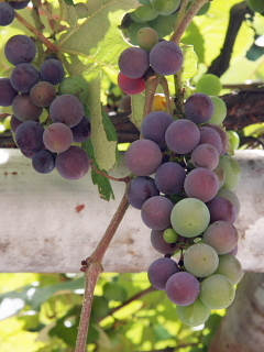 ブドウが色づきはじめ、もうすぐ食べ頃になりそうです。