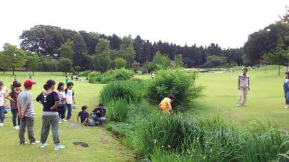 公園で楽しく遊んでいます。水路を飛び越すのに挑戦するのが流行っています。見事成功すると大きな拍手が!