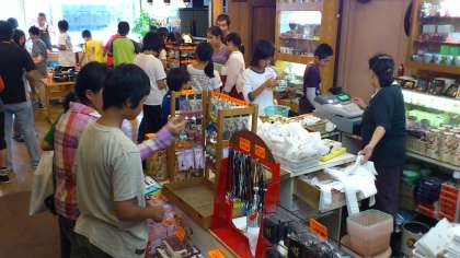 お土産買い物タイム。予定よりも早かったので、余裕の時間です。何にしようか迷っています。