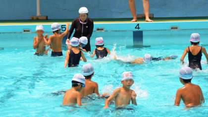 8月になりました。ところが、夏らしいカーッと暑い日にはなりません。2日もすっきりしない天気で、水からあがると肌寒いくらいでした。それでも通って来た子どもたちは元気に泳ぎました。夏休みの前期水泳指導は、4日(木)で終了です。