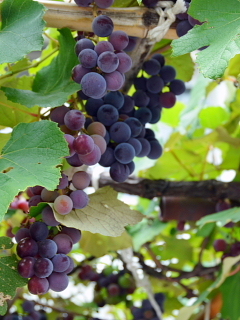 校長室前のブドウが色づき、そろそろ食べ頃になっています。試食してみたところ、甘みは少ないもののあまり酸っぱくもないので、水泳に通ってきた子どもたちに分けることにしました。
