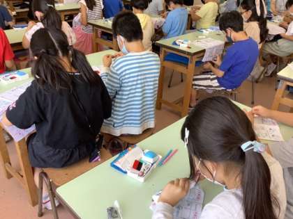 今月から本格的に裁縫の学習が始まりました。「早く縫いたい!」と4月から楽しみにしていた子も多く、みんな集中して取り組んでいました。まずは、玉結び・玉止めです。何度も何度も試してはやり直し、子ども達は着々と技を身に付けていっています。5年生のみなさん、お家でも是非チャレンジしてみよう♪