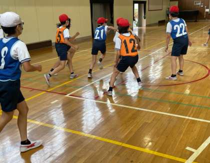 体育の学習ではバスケットボールを行っています。6チームの総当たり戦です。「ぼくたちのチームは細かいパスが得意だから、チームでたくさんパスをつなごう!」「ボールカットしたら、ロングパスするから、みんなで走ろう!」など、各チームの特色を生かした作戦を立てて、積極的に取り組みました。