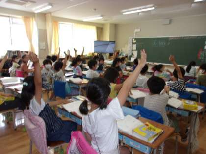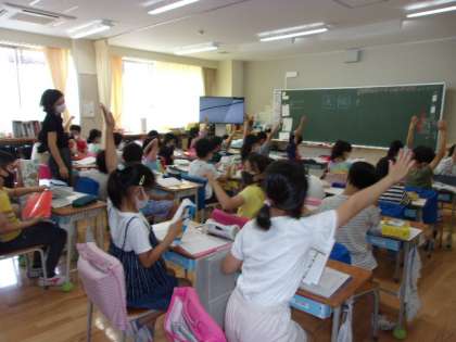今、国語の時間では、「一つの花」を学習しています。太平洋戦争について、タブレットや国語辞典等を使って調べました。少しづつ物語の時代背景が分かってきてました。登場人物の「お母さん」や「お父さん」の気持ちを深く考えようと取り組んでいます。