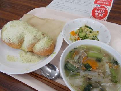 今日のあげパンは、梅雨の季節限定の「ケロケロあげパン」です。いつも使う大豆きなこではなく青大豆のきなこを使い、雨の好きなかえるをイメージしています。ほんのり黄緑色の青大豆きなこを味わってください。