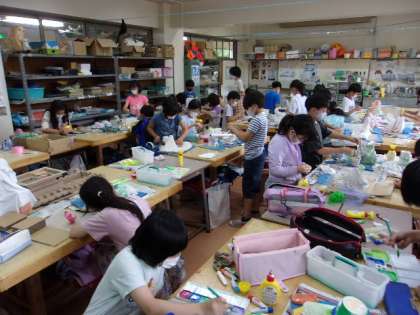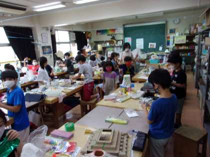 16日の図工で「おもしろ島」が出来上がってきました。作業の進み具合に個人差があるので、完成した子ども達は、互いに観賞し合いました。もう少しで全員完成です。