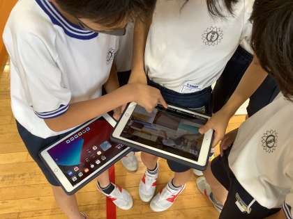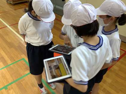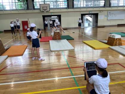 6/16(水)6年生になって1回目のとび箱運動の学習をしました。タブレットを活用して自分が跳ぶ姿を撮影し、友達の跳ぶ姿と見比べたり、お手本と照らし合わせたりしながら自己の課題を見付けていきました。