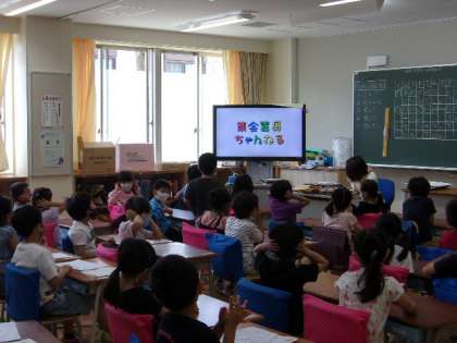 今回のみんなで楽しく集会は、「スリーヒントクイズ」でした。集会委員会のみなさんが趣向を凝らして作ったクイズは、1年生から6年生までみんなが楽しむことができました。放送ならではの工夫がされた、お楽しみ集会でした。