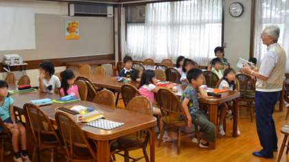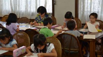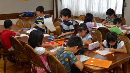 27日、まだ学校は夏休みですが一足早く新寺子屋が始まりました。夏休み期間中ということもあり、今日はいつもより幾分欠席の子が多かったものの、10時の開始時刻にはやる気満々の子どもたちがそろい、静かに寺子屋の先生のお話を聞いて、勉強に励みました。