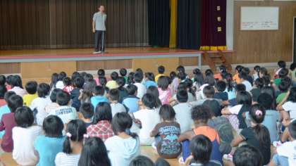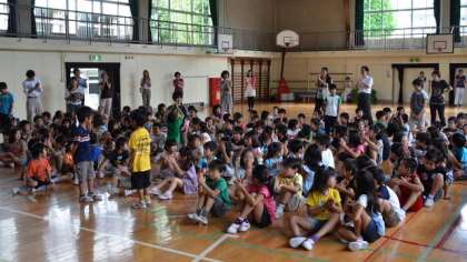 始業式終了後、転入生3名の紹介、生活指導主任から校庭の使い方についての説明、夏季水泳指導に休まず出席したこの紹介をしました。