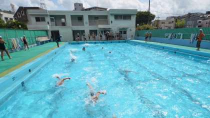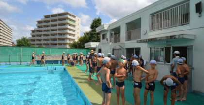 2日、5・6年の体育、水泳指導のようすです。夏休み中のプールに参加した子どもたちの中には、泳力がグンと伸びている子もいて、検定に果敢に挑戦していました。5・6年生は来週9日1・2校時に水泳記録会を行います。今日はその練習も兼ねて行いました。最後はリレーの練習に取り組みました。みんなやる気満々。来週が楽しみです。