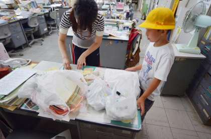 「エコに来ました」と言って職員室を訪れた1年生のY君。本校で回収している牛乳パックとペットボトルキャップを、夏休みたくさんためて、今日もってきてくれました。希望丘小学校にはたくさんの「エコレンジャー」がいて、日々努力しています。ご協力ありがとう。