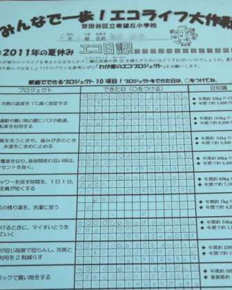 本校は世田谷区の「学校エコライフ推進校」に指定されています。夏休み、エコ日記の記入を全校児童に課題としました。2学期が始まってほとんどの子が提出してくれました。これは家庭の協力も必要ですから、各家庭で真剣にエコについて考え取り組んでくださった成果だと思います。ペットボトルのキャップ回収や、牛乳パックの回収にも取り組んでおり、回収量が区内でも屈指だそうです。エコ意識の高い希望丘小学校。すばらしいですね。