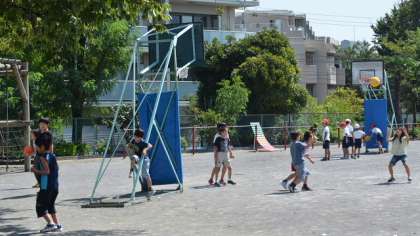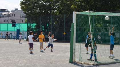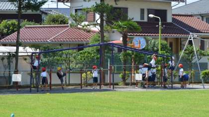 7日、久しぶりに晴れ渡った空の下、子どもたちが休み時間に元気に外遊びしました。