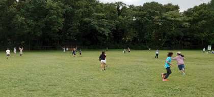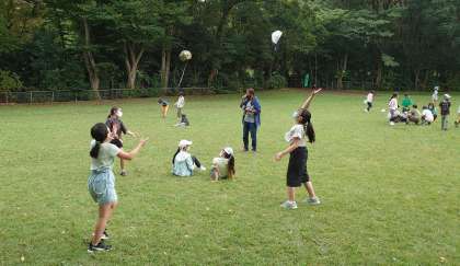 砧公園に移動しました。午後も広い芝生の上で元気いっぱい遊びます。