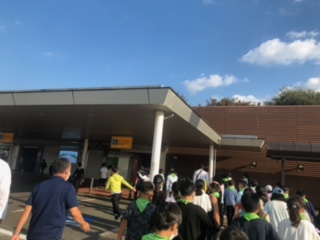 バスの中では、眠っている子をそっと気遣う様子が見られました。最後まで気を引き締めて仲間と助け合いながら、希望丘小学校まで帰っていきます。