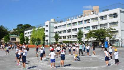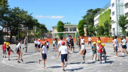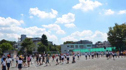 晴天の校庭で