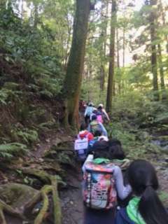 頂上に着きました!空気が澄んでいて、とても気持ちが良いです。子どもたちも「ついた!頂上だ!」と喜んでいます。