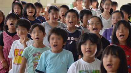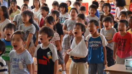 16日朝は、体育館で音楽集会を行いました。集会も運動会モードで、運動会の歌の練習をしました。昨年までの運動会の歌から、今年度は「ゴーゴーゴー」というリズミカルな歌に変えました。練習を始めて日も浅いので今日はうまくできるかなと思いましたが、さすが希望っ子たちはすっかり覚えて、力いっぱい歌いました。見てくださいこの表情。すばらしい。
