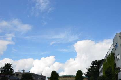 16日朝、西側の空を写しました。9月も半ばですが暑い夏のような天気が続いています。でも高いところに目を向けるとしっかりと秋の気配を告げる空のようすが・・・。もうすぐ秋の訪れを予感させます。