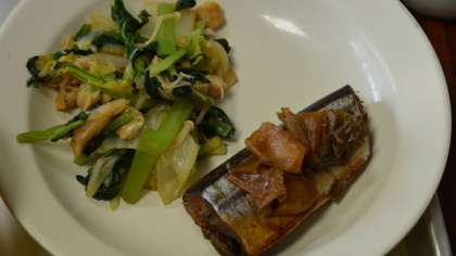 16日の給食は、秋らしさを感じるメニューでした。ご飯はサツマイモご飯、おかずに北海道からとどいたサンマのショウガ焼きです。秋の味覚リンゴもついています。季節の旬を感じることも食育です。いかがですか?おいしそうでしょう?