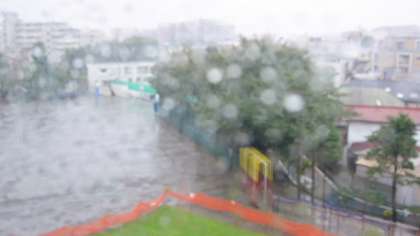 21日夕方4時半頃のようすです。風雨が強まってきたところです。芝生の進入禁止のネットも支柱が曲がってしまいました。ブドウ棚も一部破損しています。この記事を書いているのは18時ですが、風向きが変わり、風雨はますます強まっています。通り過ぎるまでじっと待つしかなさそうです。現在のところ吹き付ける雨による雨漏りが何カ所かありますが、大きな破損箇所はありません。