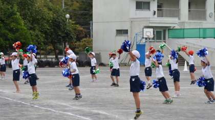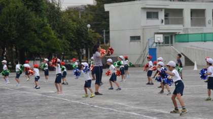 3、4校時は1、2年生が校庭で練習をしました。初めはラジオ体操。だいぶあわせてできるようになってきました。しっかりやろうとすると難しいのがラジオ体操です。次に団体演技の練習です。今日は手にポンポンをもって校庭いっぱいに広がって踊りました。力強さに華やかさが加わりました。