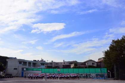 28日、今日は朝から気持ちのいい秋の空が広がりました。運動会は10月1日。当日もこのようなよい天気になるといいのですが。