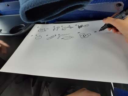 羽生パーキングエリアに到着しました。バスの中では、クラスごとにレクを行っています!子どもたちの笑い声がバスの中に響きわたっています。